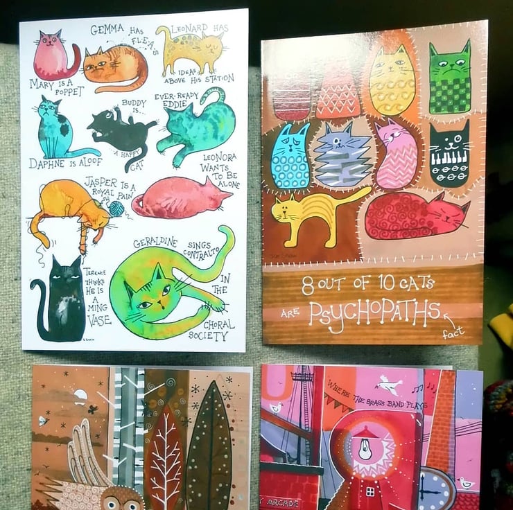 4 of my own designs/mixed. Blank A5 greetings cards.