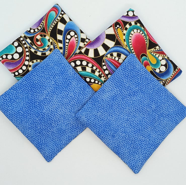 The reverse is blue cotton fabric to complement the blue in the swirly pattern.