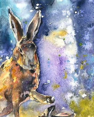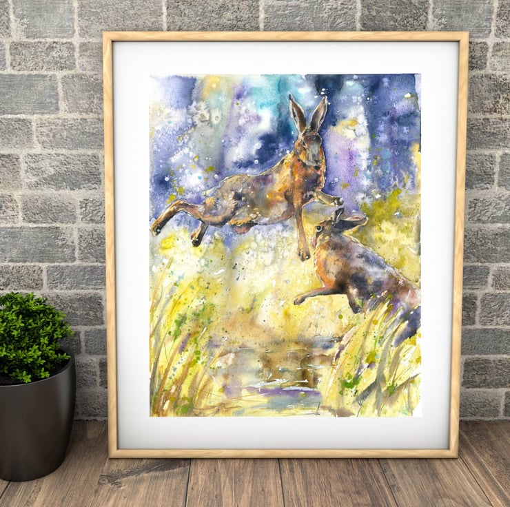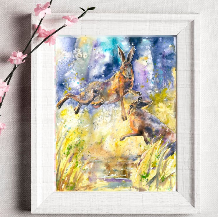 BOXING HARES print from original Watercolour painting by Naomi Neale 2 sizes