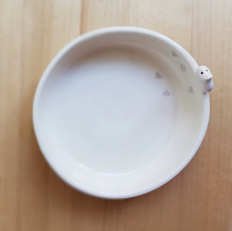 I enjoy making little individual pets to sit on the rim of pet bowls, the white rabbit sits quite nicely but has left some dirty pawprints!