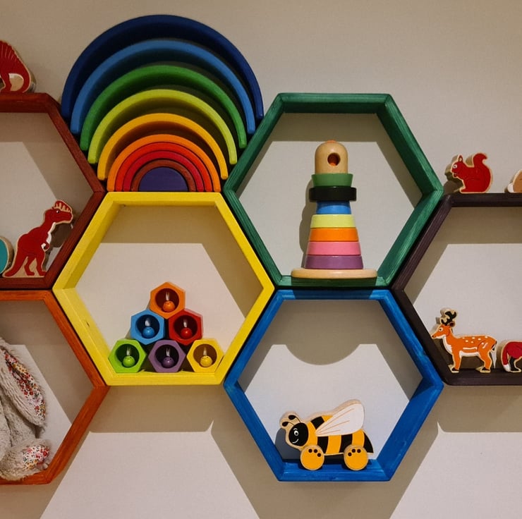 Handmade from reclaimed timber, these stunning rainbow shelves would make an excellent addition to any child's bedroom, toy room or nursery.