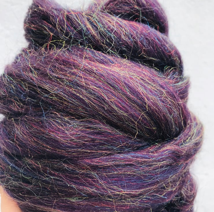 Felting wool for both needle and wet felting projects. Also can be used for spinning. Pure high quality Merino wool blend with shimmering Angelina fibre mix. Looks beautiful when felted or spun. 50grams