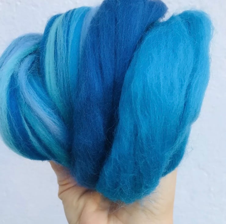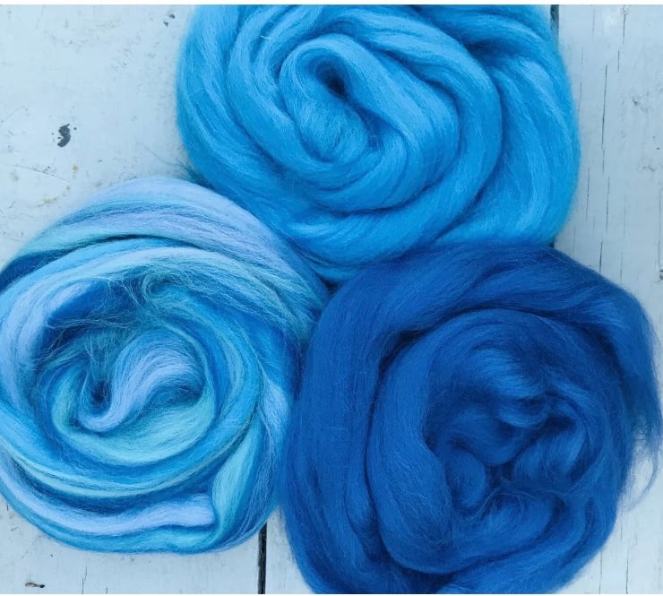 Felting wool, set of 3 blue felting wool tops/roving for both needle felting and wet felting and also spinning. 10grams of each totalling 30grams. Fabulous felting wool including a blue stripy blend. Mix high quality Merino and Corriedale wools.