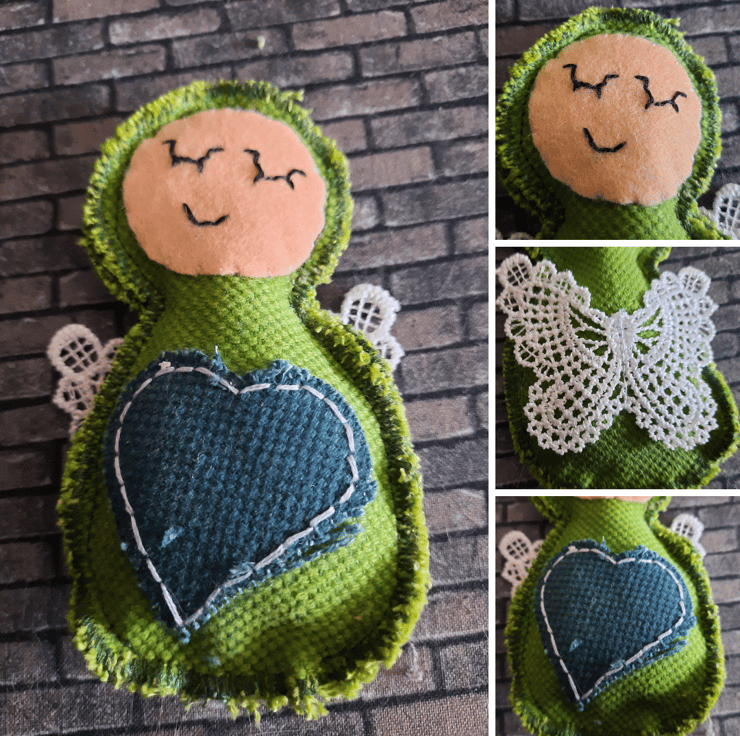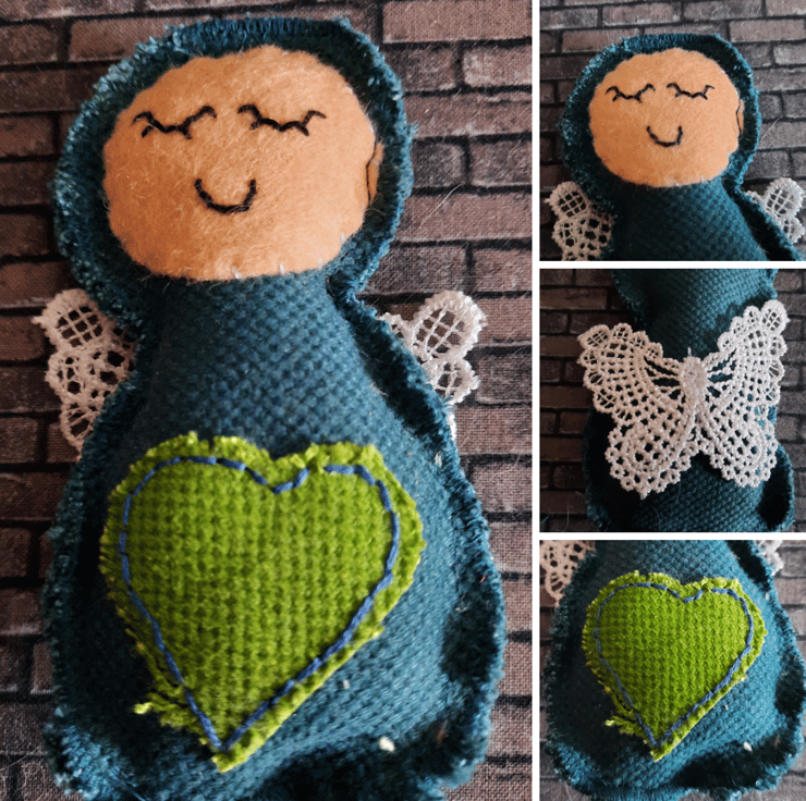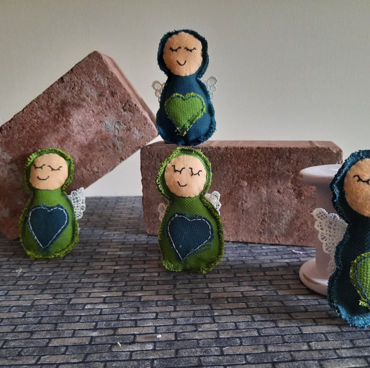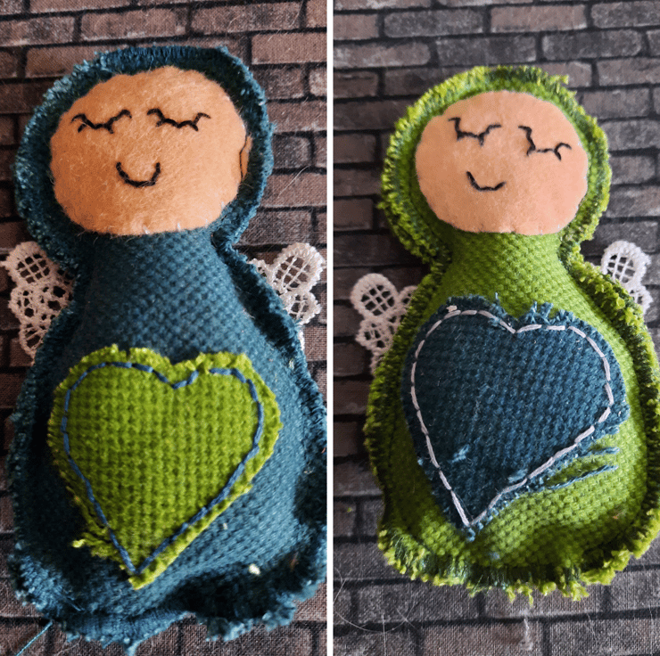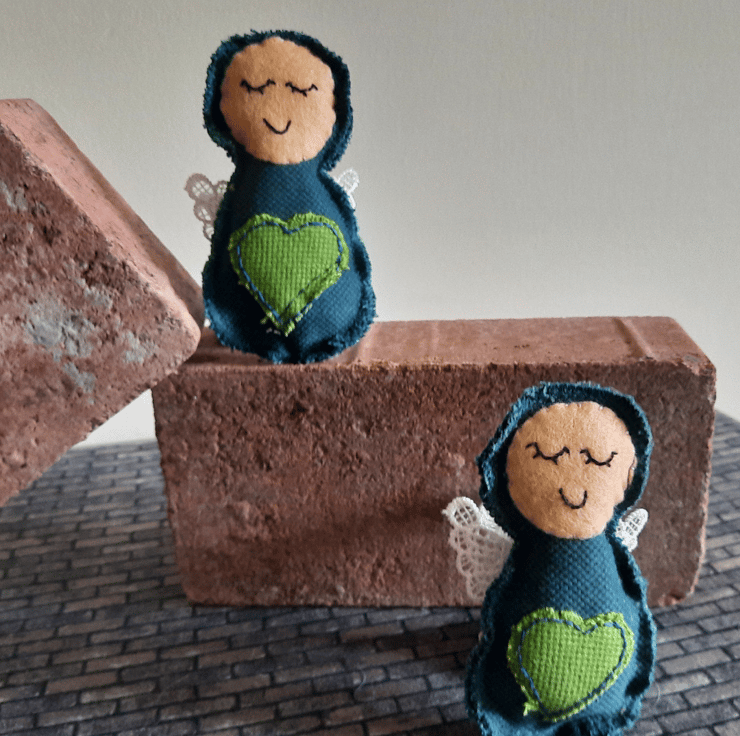 Handmade with care, each angel is upcycled from fabric samples, making them as sustainable as they are charming. The angels are embellished with a heart in a complementary colour for a touch of sweetness, and their wings are crafted from delicate lace for added texture and elegance.
