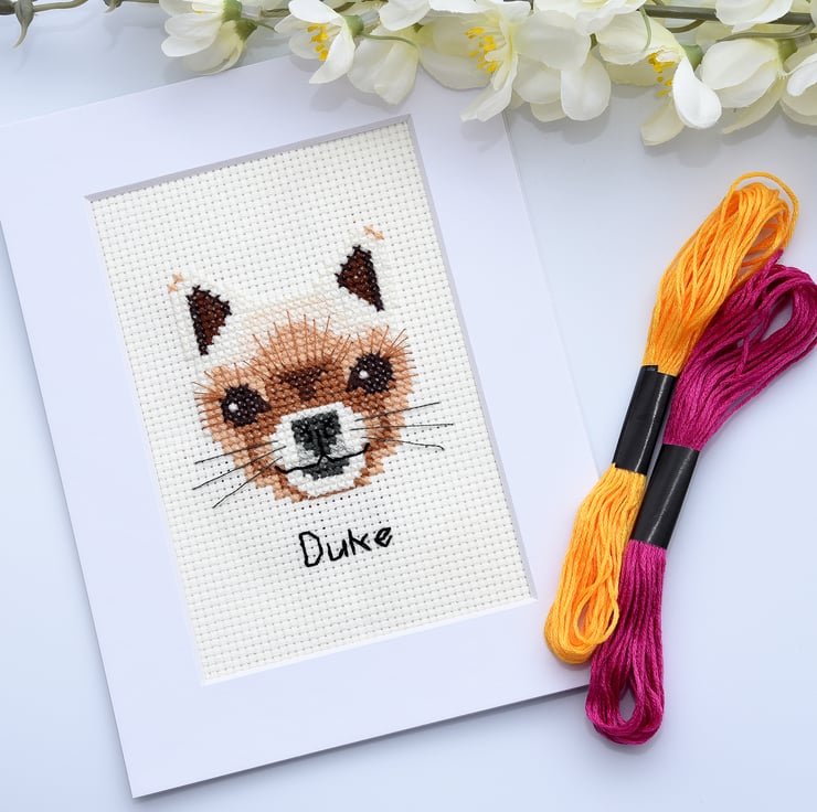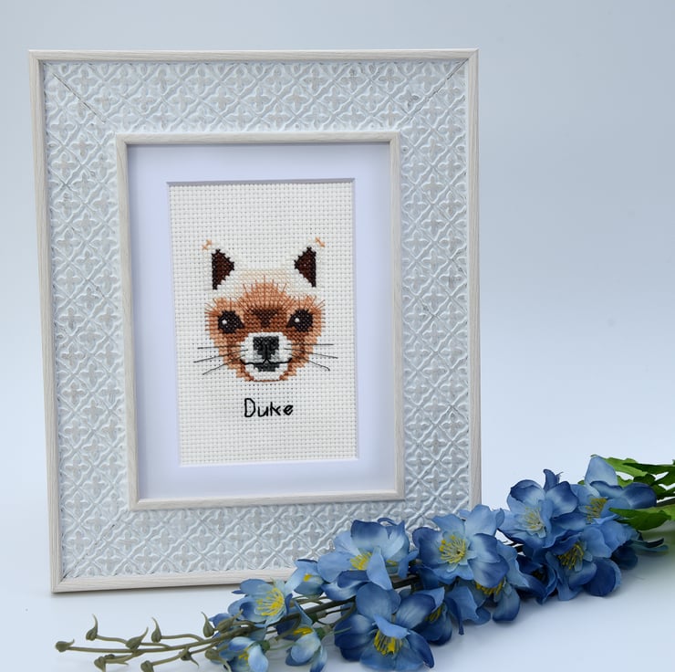 This listing is for a one pet portrait. It will be supplied as a 6x4" cross stitch in an 8x6" mount which can then be framed. FRAME IS FOR ILLUSTRATIVE PURPOSES ONLY AND IS NOT INCLUDED. I do not include a frame to keep delivery costs down. You can pick up some beautiful frames for the price that I would have to charge for delivery, so I think it's only fair!