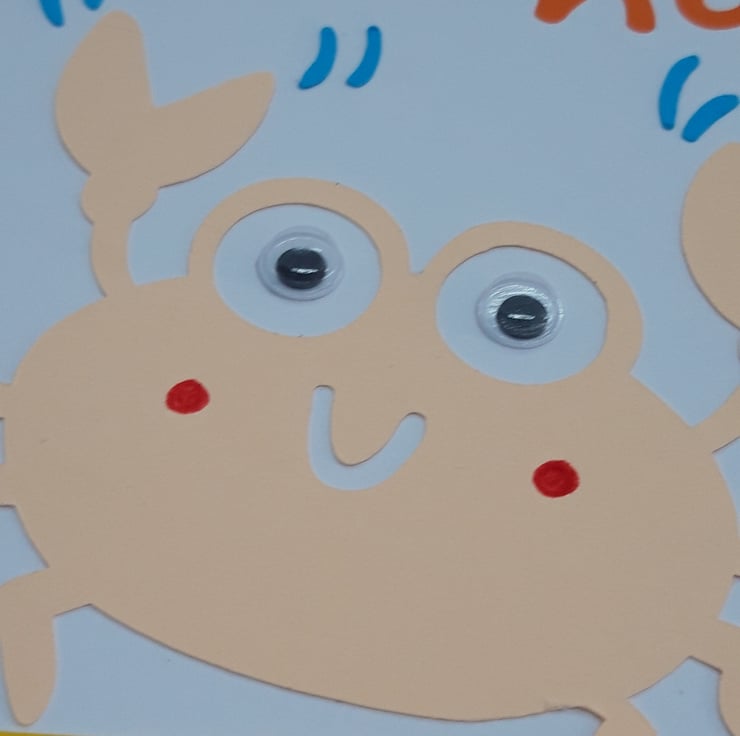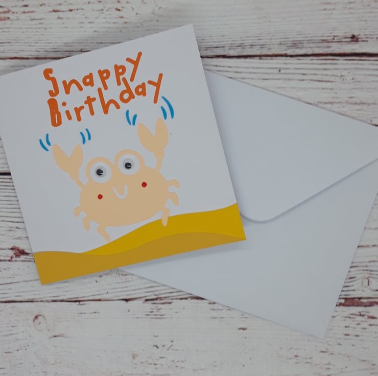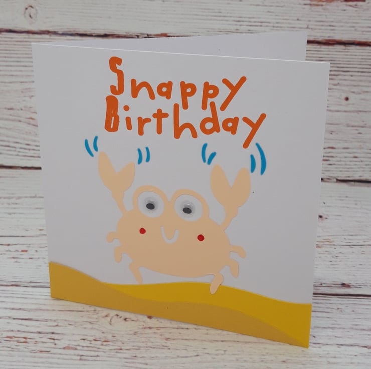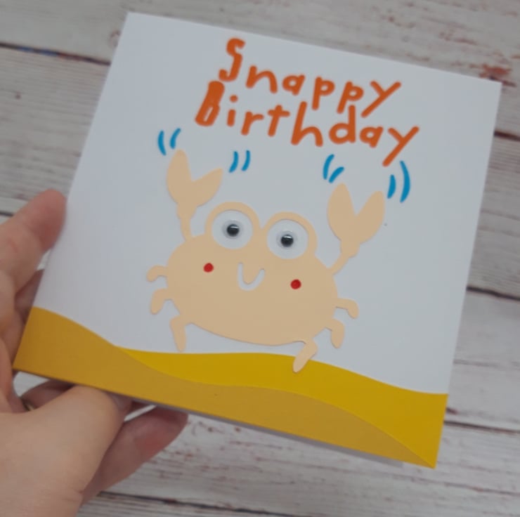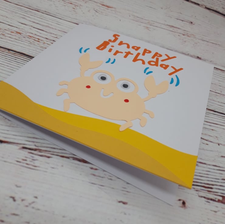 This sweet handmade card from HoppyCraft features a cute little Crab ready to wish the lucky recipient a 'Snappy Birthday'