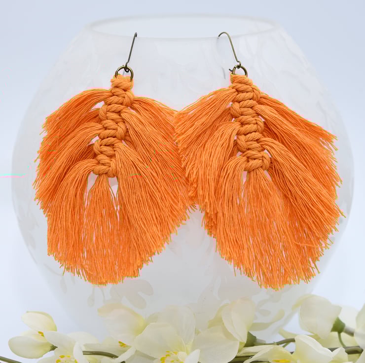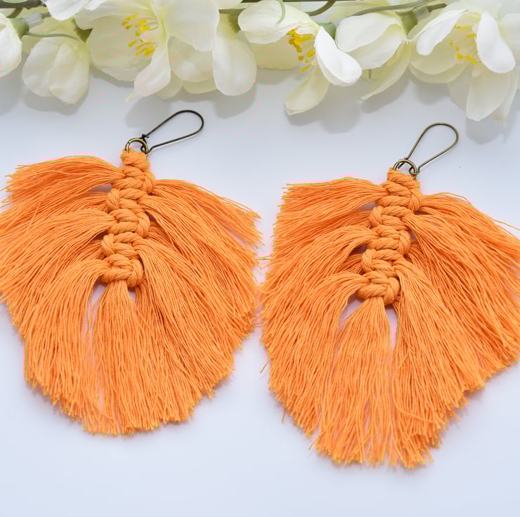 Bright, beautiful, big and perfect for summer! These sunny orange macrame feather earrings are perfect for making a statement! Handcrafted in my home studio, these earrings will put a smile on your face :-)