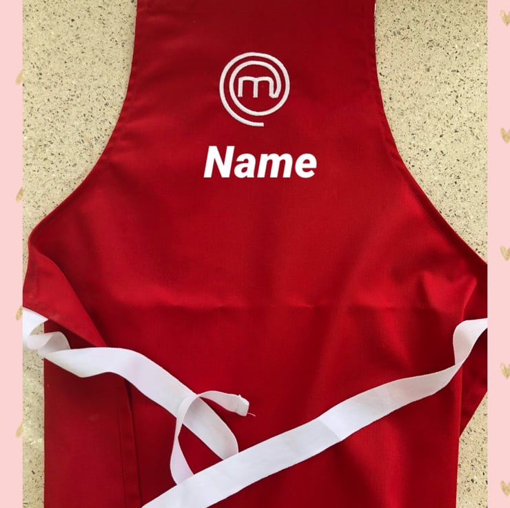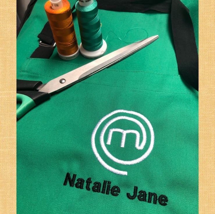 We will then Embroider the Masterchef style logo onto the apron in the choice of thread colour, then in your choice of embroidery thread colour the name or text or required.