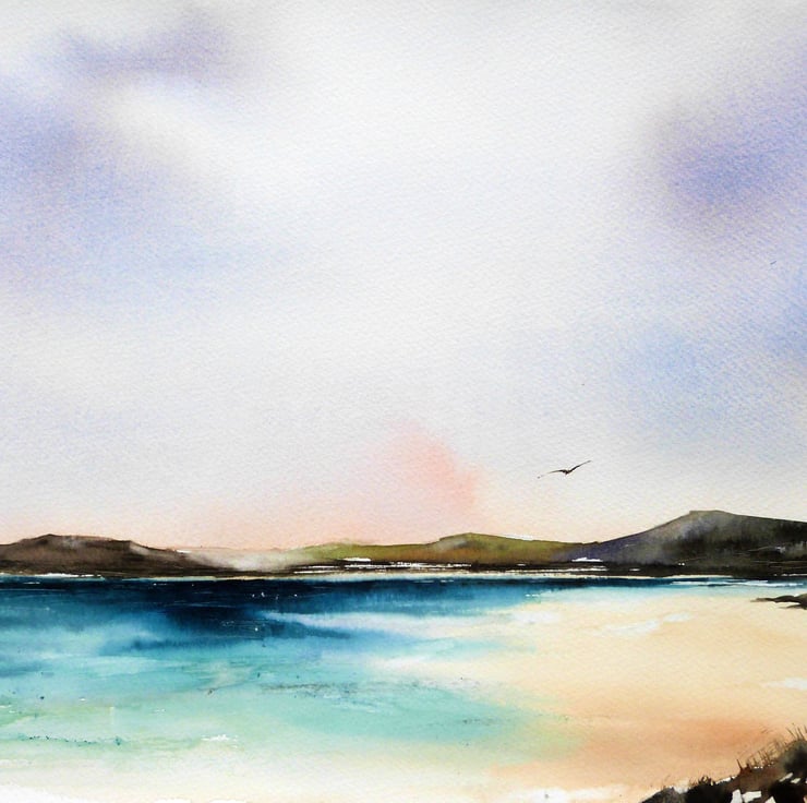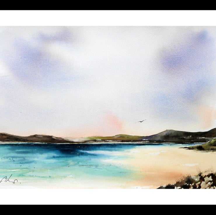 Working from my home studio on the beautiful Isle of Mull off the west coast of Scotland, my paintings are inspired by the wonderful Seascapes, Landscapes and Wildlife that surround me. This particular painting is of the wonderful Luskentyre Sands, inspired by my travels off the west coast of Scotland.