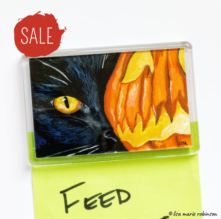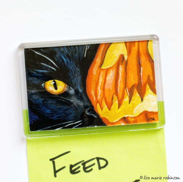 Spooky Halloween cat art fridge magnet. Lovely little gift for a cat lover.