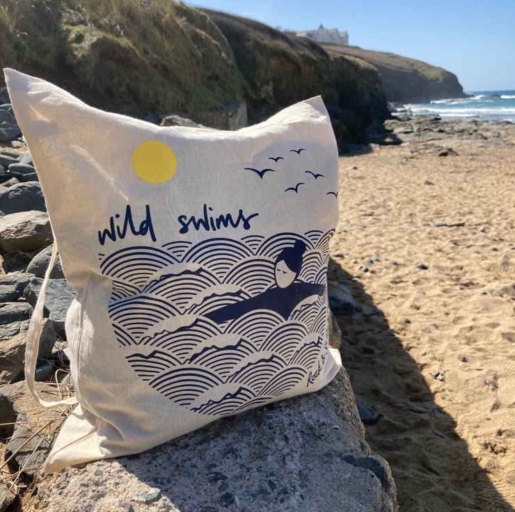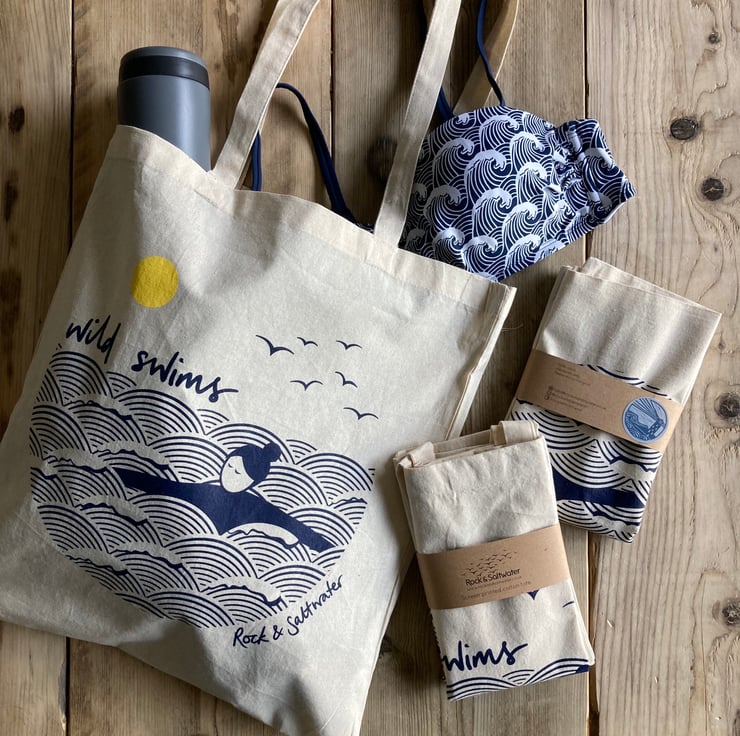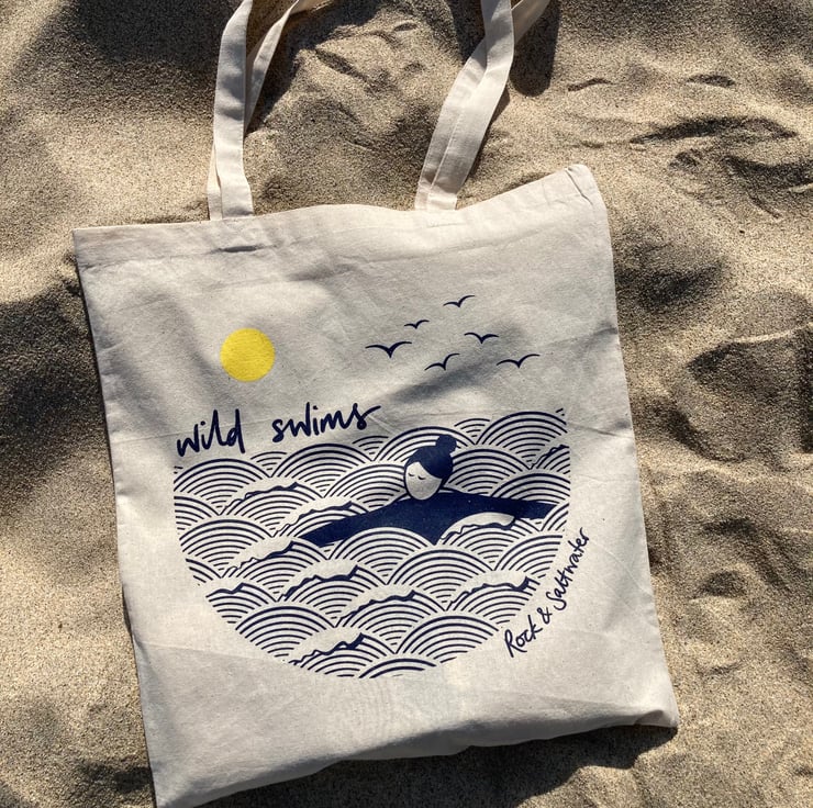 Our original 'wild swim' illustration, beautifully screen printed on a cotton tote bag. Perfect for tucking your towel, swimsuit and other essentials inside, or for nipping to the shops – these tote bags easily fold away so they can be popped inside a handbag or larger bag, ready for whenever you need it.