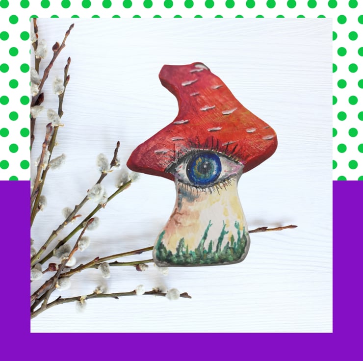 This whimsical all seeing eye mushroom is perfect for an alter, season table or indeed to hang anywhere else, where he can keep an eye out for you.