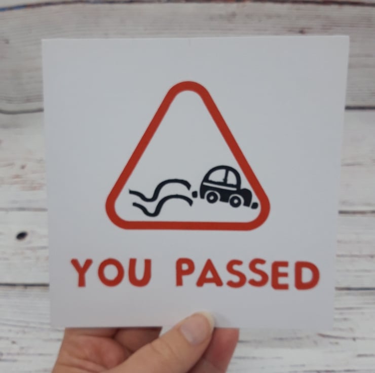 Featuring a road sign and the words 'You Passed' boldly across the top this card is certain to raise a smile.