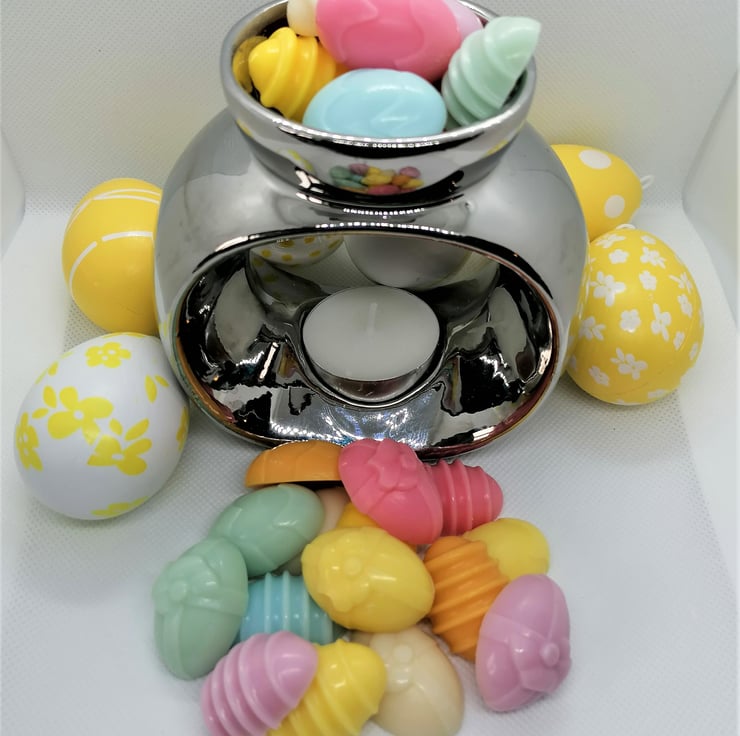 These cute little egg shapes are perfect for Easter and springtime! Lovingly made from Eco Friendly soy wax, each melt is approx 3.5cm x 2.5cm x 1cm. You will need approx 3 / 4 in your burner but that depends on it's size.