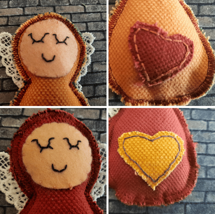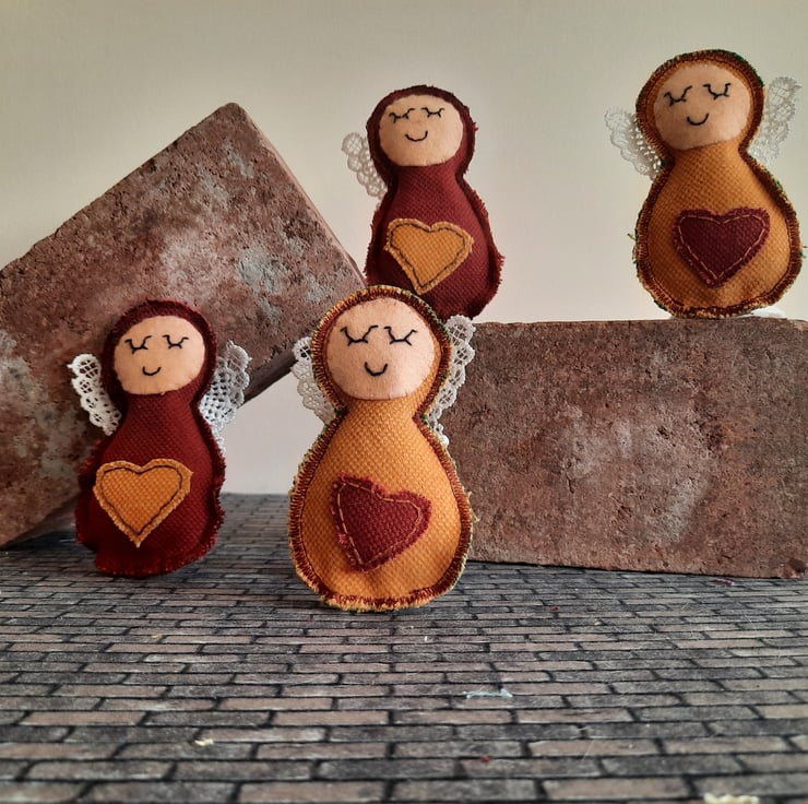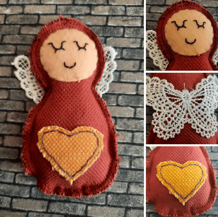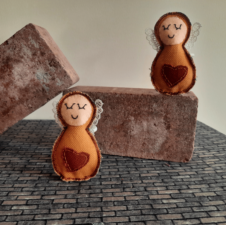 Handmade with care, each angel is upcycled from fabric samples, making them as sustainable as they are charming. The angels are embellished with a heart in a complementary colour for a touch of sweetness, and their wings are crafted from delicate lace for added texture and elegance.