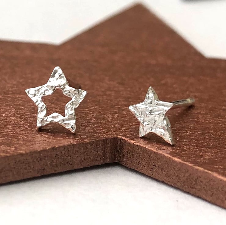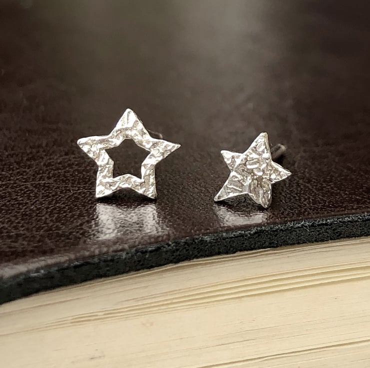These edgy mismatched textured star earrings are so versatile they can be worn with any outfit.