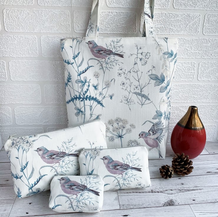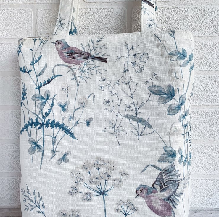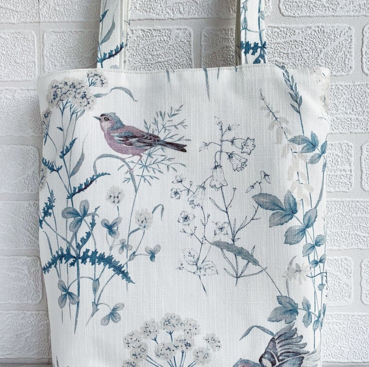 This tote bag is very versatile - perfect for use as a shopping bag but pretty enough to be used as a handbag. It can be easily folded and placed inside a handbag. With its delightful chaffinches and wild flowers, it would make a lovely gift, particularly for anyone who loves birds and nature.
