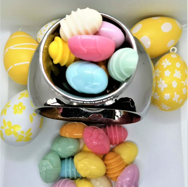 These cute little egg shapes are perfect for Easter and springtime! Lovingly made from Eco Friendly soy wax, each melt is approx 3.5cm x 2.5cm x 1cm. You will need approx 3 / 4 in your burner but that depends on it's size.