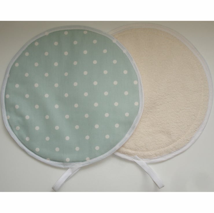 Each mat has three layers - Facing cotton fabric, a layer of padding and a layer of towelling - Making it also suitable for mopping up and pot-grabbing!