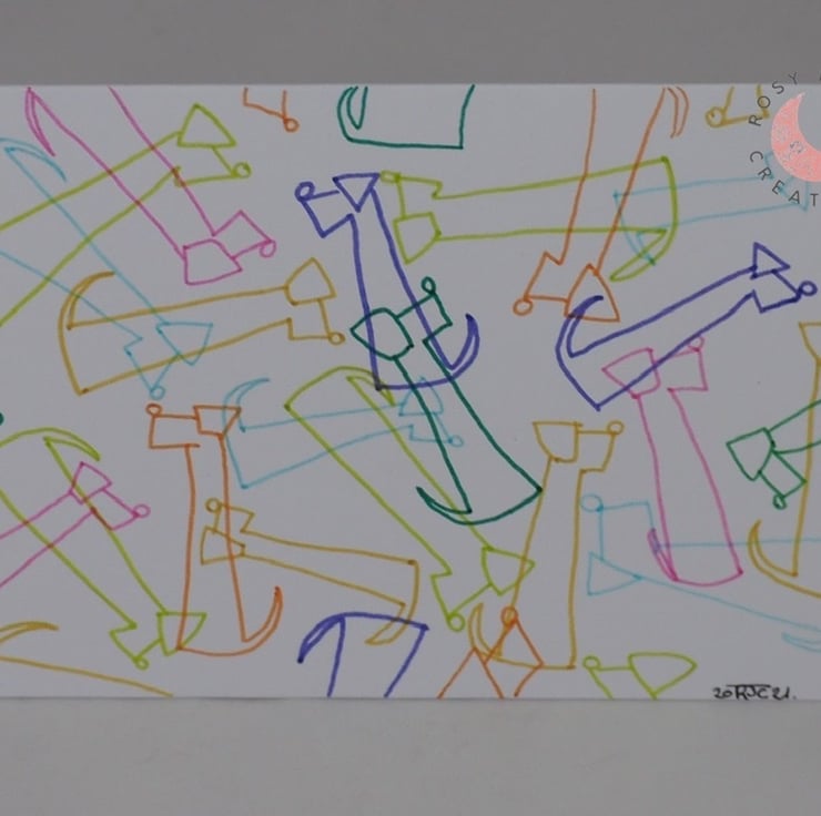 This colourful card features colourful dogs tumbling across the front. Each dog is individually hand drawn, making every card different.