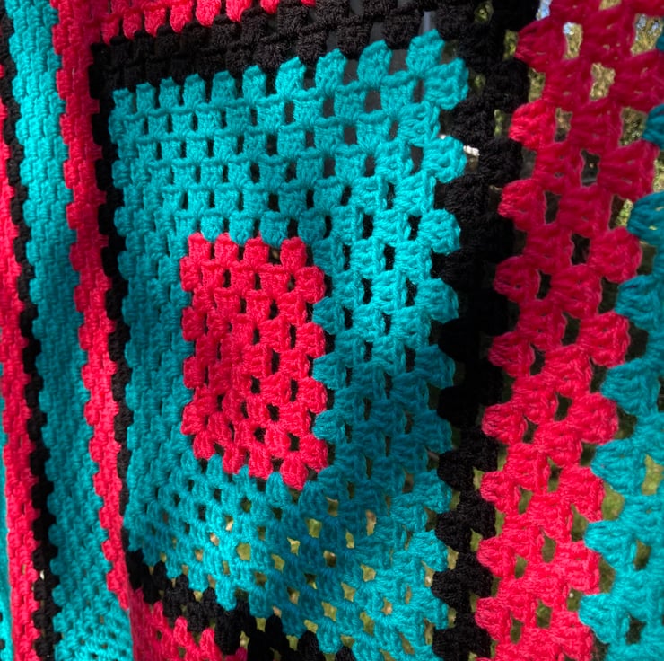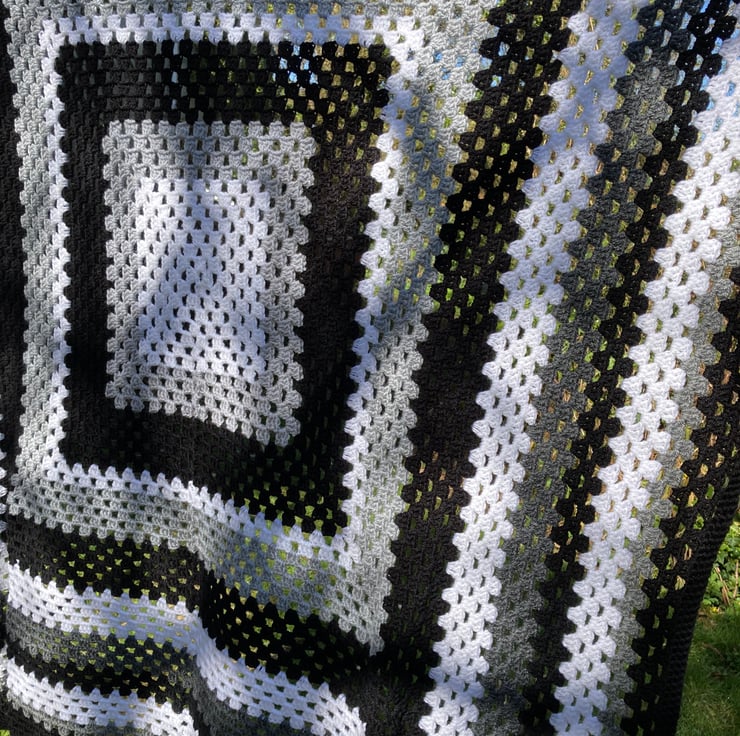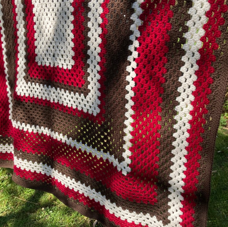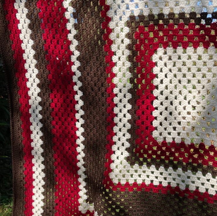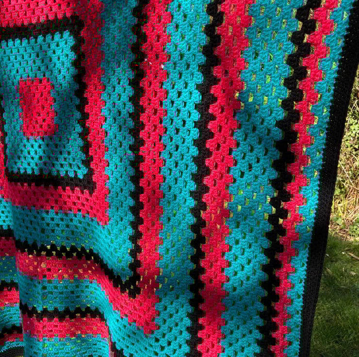 A hand Crocheted acrylic yarn blanket perfect for any time of the year to sit on in the garden or to have on your bed or sofa