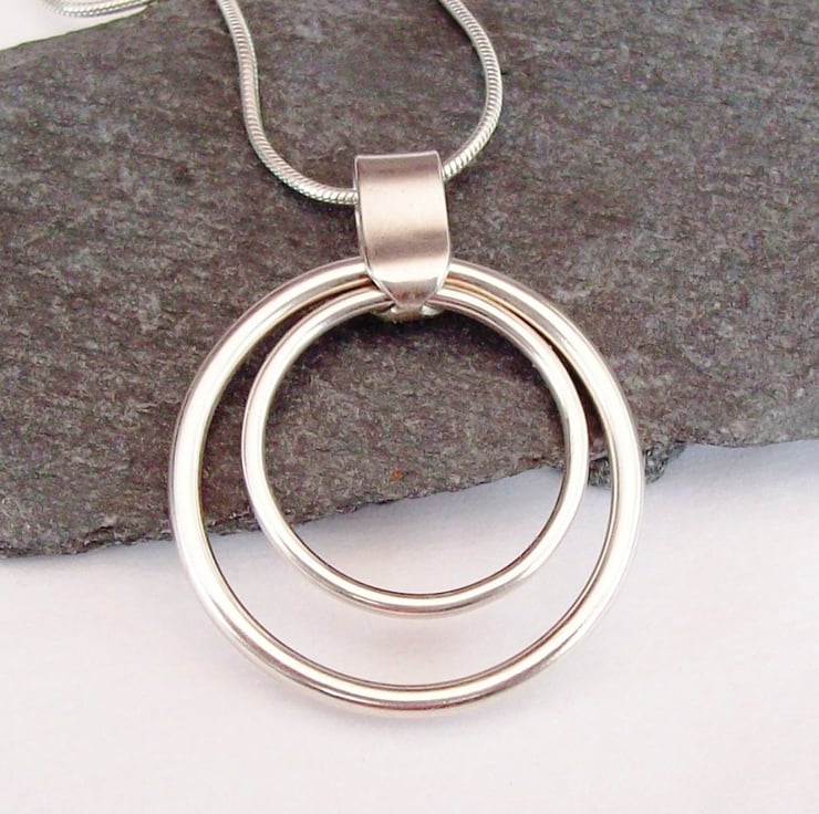 Handcrafed sterling silver spinning circles pendant fully hallmarked