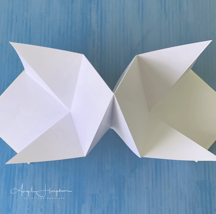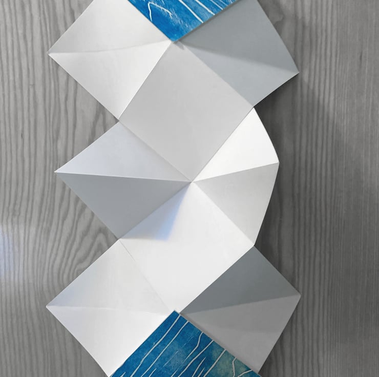 A small paper unique hand made and unrepeatable Pop Out Book with hard covers. The covers have a fragment of a woodcut print. Inside it has white folded cartridge paper, and is left blank for your own use.