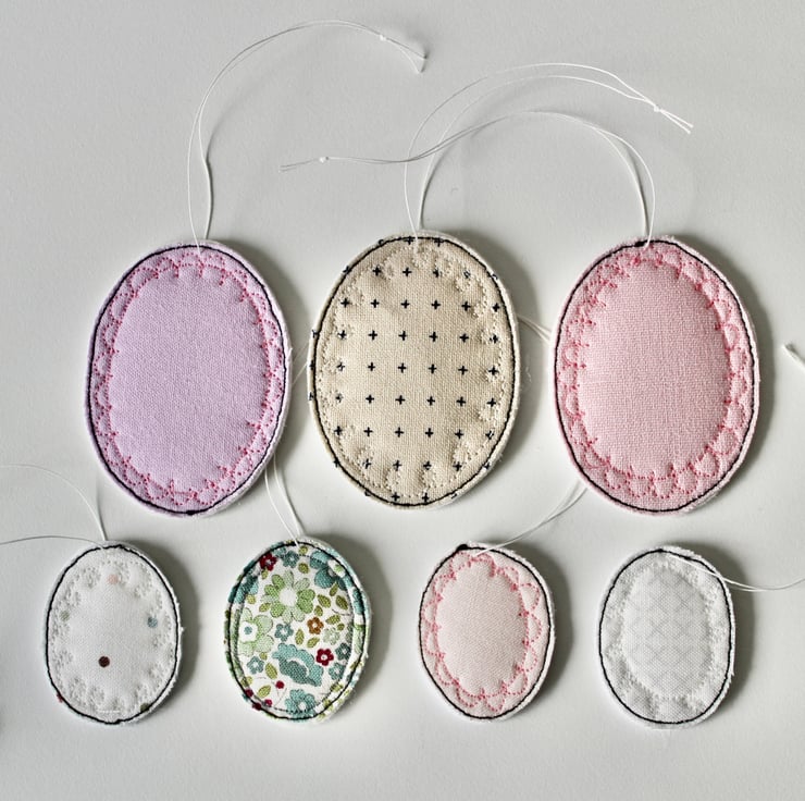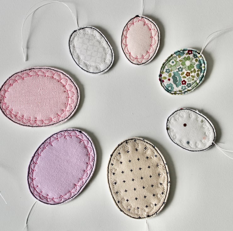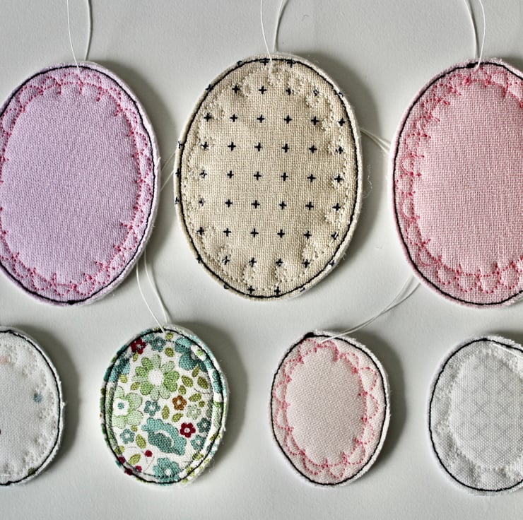 Pretty fabrics sewn into egg shapes.