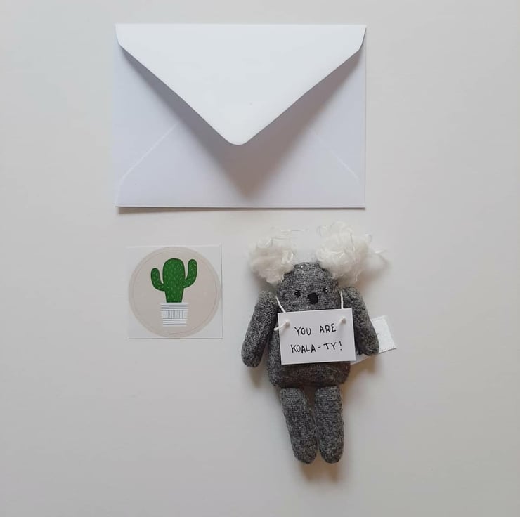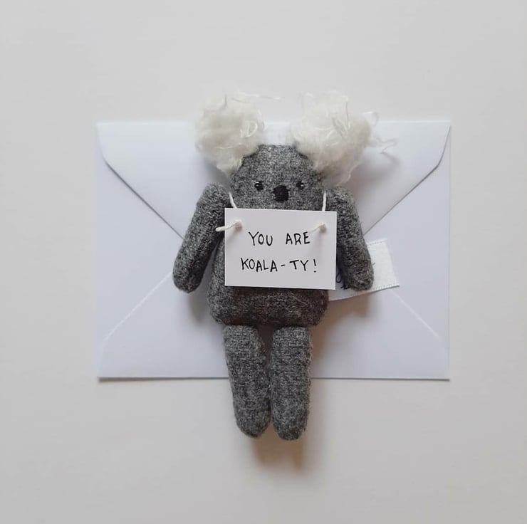 The koala is 10cm tall, with a note around his neck saying 'You are koala-ty!'.