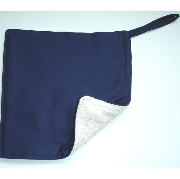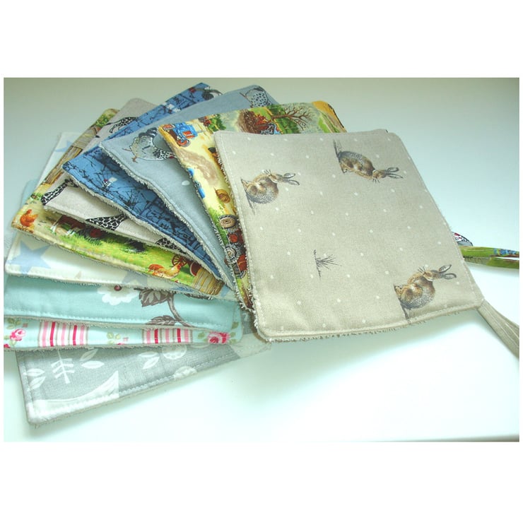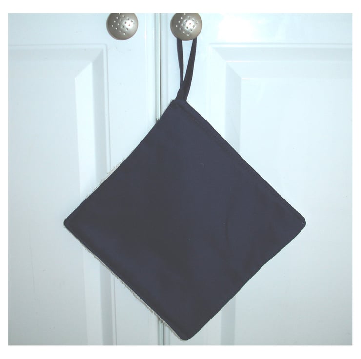 A Pot Holder backed with a cream towel fabric - useful for mopping up around the kitchen and passing those hot dishes round the table. Makes a great surface saver / coaster / trivet