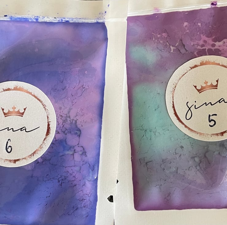 The pigment changes colour depending on heat, if it’s cold the colour is a lovely fuchsia pink then as it warms it changes to a baby pink.