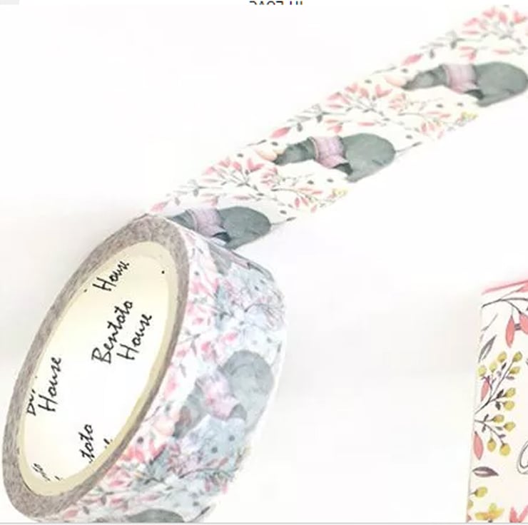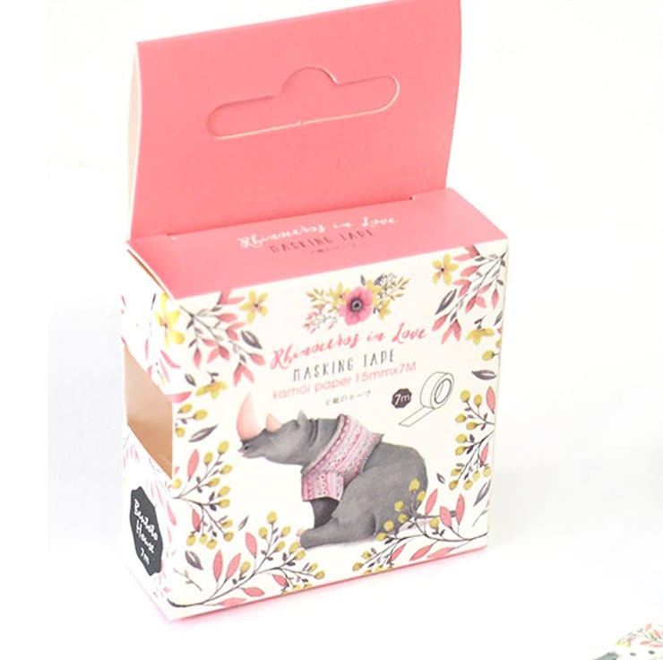 2 x Rhino & flowers pattern, Decorative Washi Tape, Cards, Crafts, 7m reel