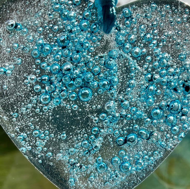 I then drill a small hole and a ribbon is threaded through, ready for hanging. Each heart measures approximately 7.5cm in size.
