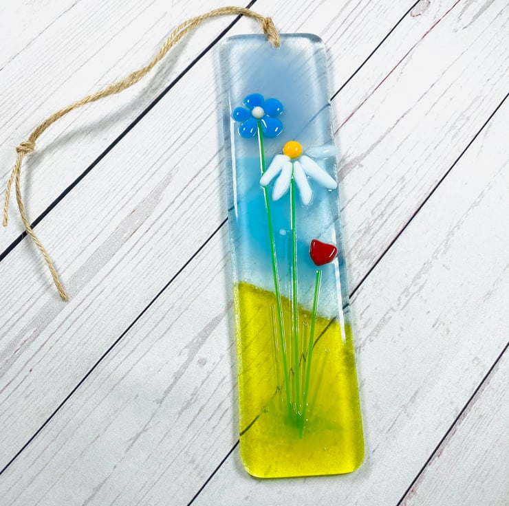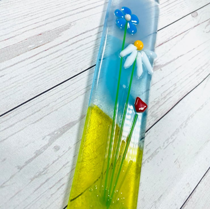 Fused glass double thick gorgeous hanging glass decoration. The stunning golden yellow beaches , wild flowers sea and sky .