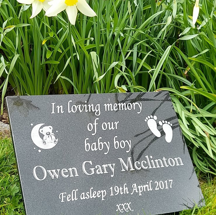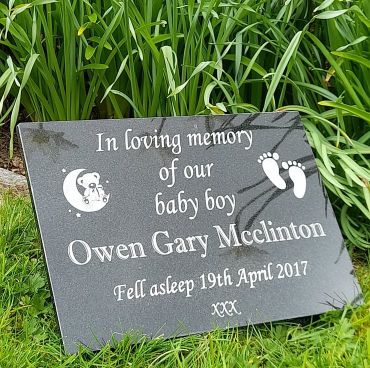 Our directly engraved Black granite marker is directly engraved with any wording of your choice