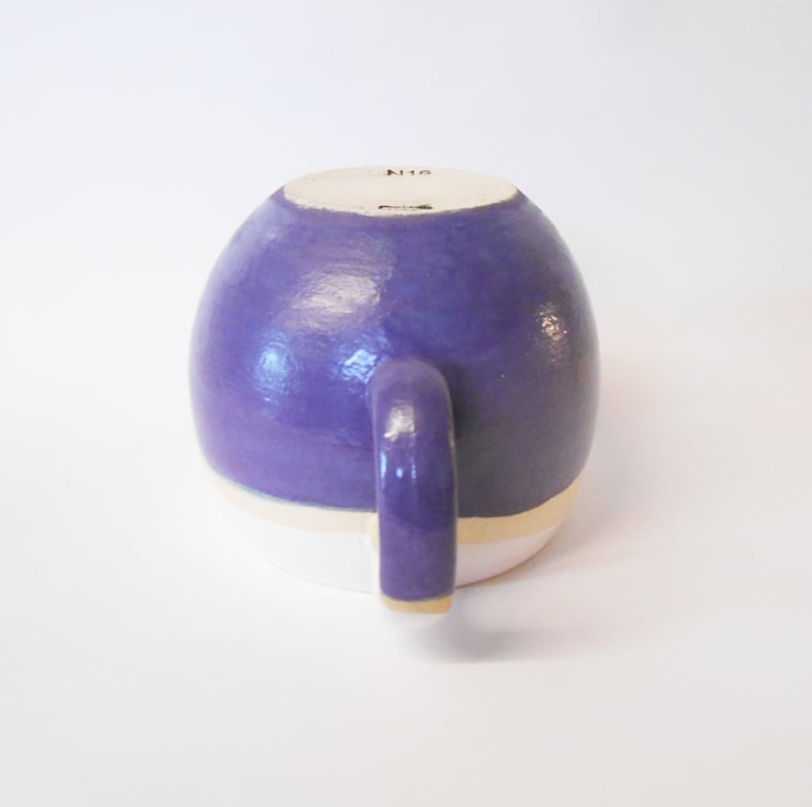 It has been glazed on the inside with shiny Tin white glaze, and the lower part of the exterior is stunning Cloudy Purple glaze.