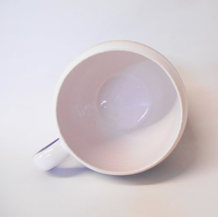 This is a wheel thrown durable slightly speckled Stoneware Ceramic "Huggable" Mug.