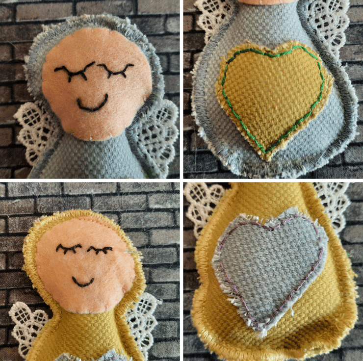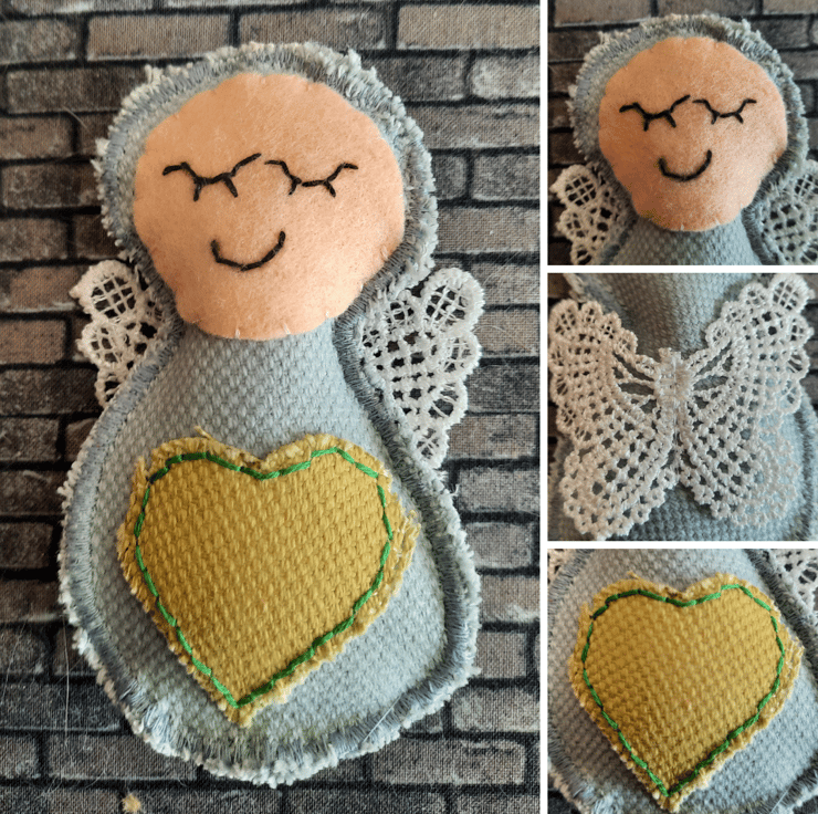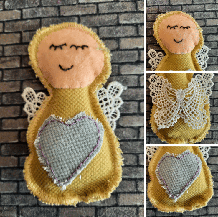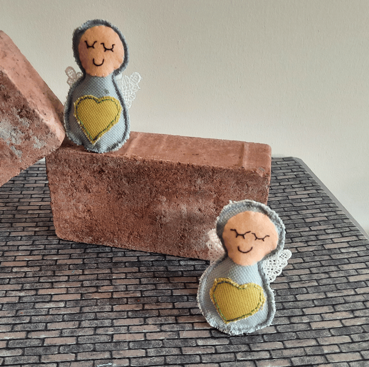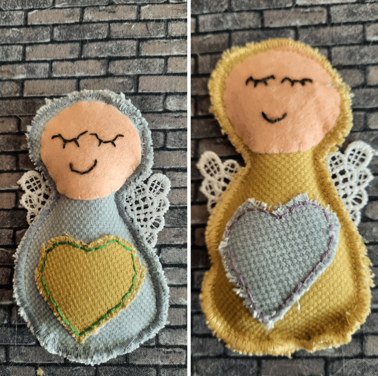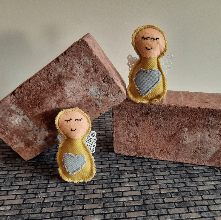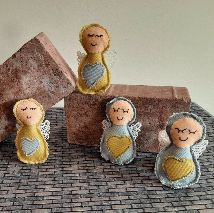 Handmade with care, each angel is upcycled from fabric samples, making them as sustainable as they are charming. The angels are embellished with a heart in a complementary colour for a touch of sweetness, and their wings are crafted from delicate lace for added texture and elegance.