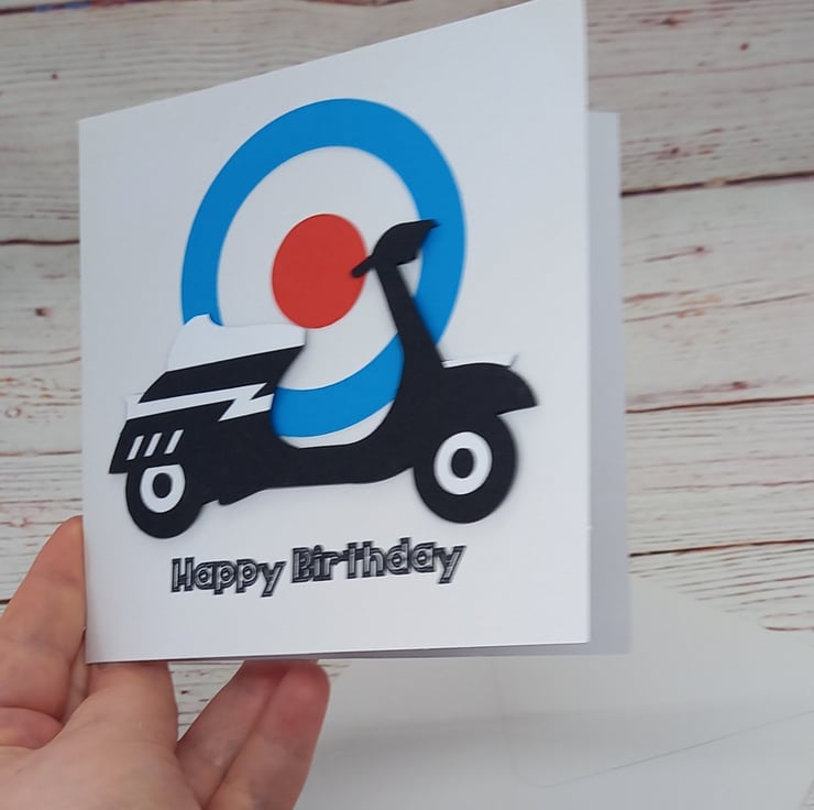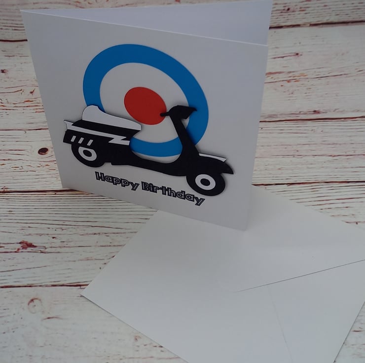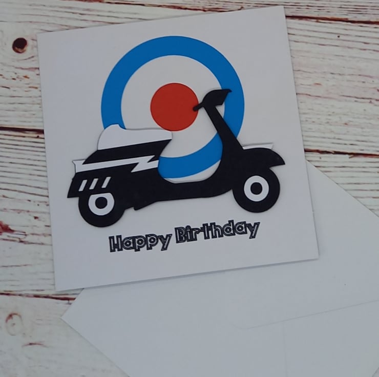 Featuring a scooter and the Mod logo this card is bold and simple.