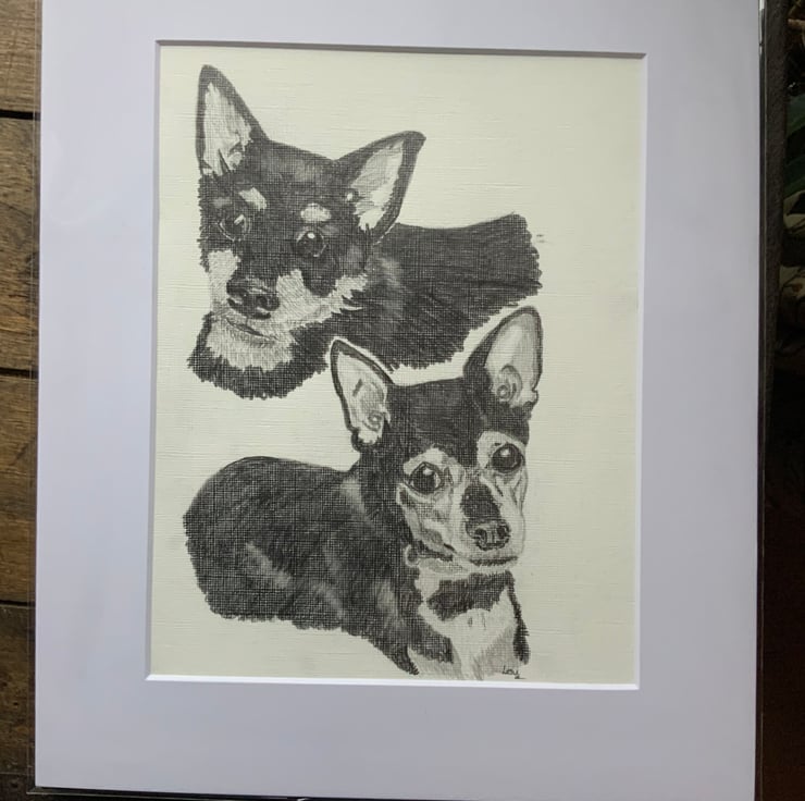 A pencil drawing of your dog, horse etc. I will put your drawing in a good quality mount so all you need to do is find your perfect frame.