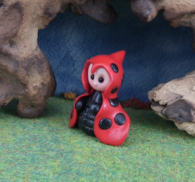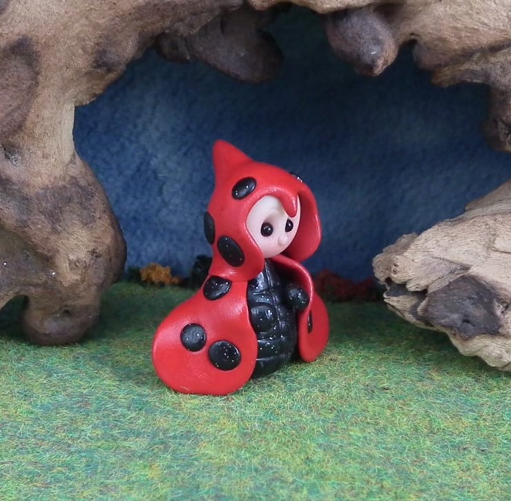 This is a 'one of a kind' creation; entirely handmade without the use of moulds here at my studio on the Sussex Coast. Modelled with Prosculpt polymers, painted with heat set paints before sealing with lacquer, Birdie has sparkling black onyx eyes and is one and a half inches tall.