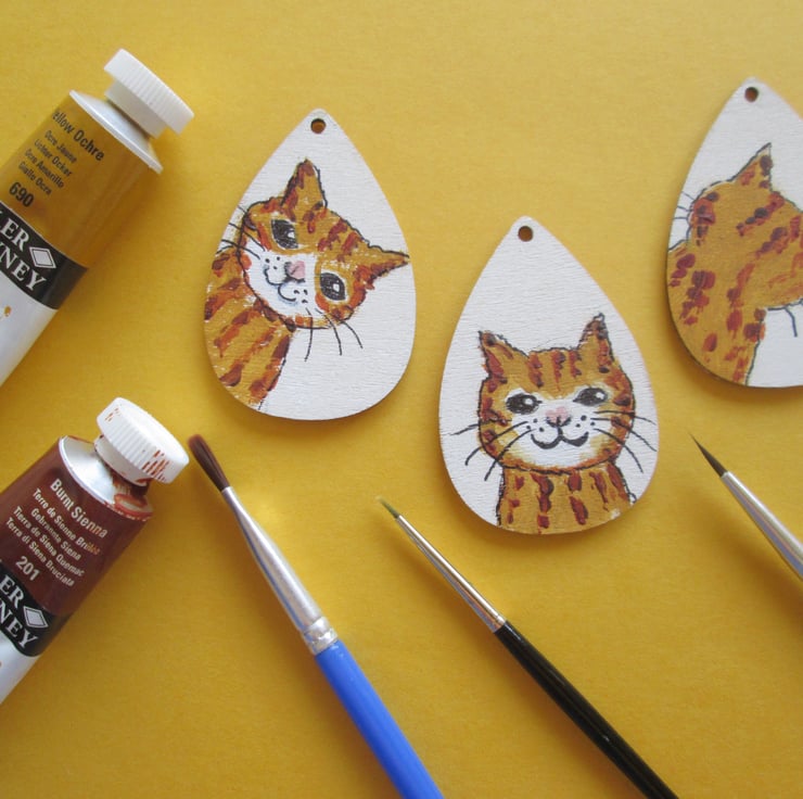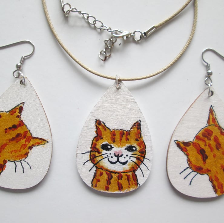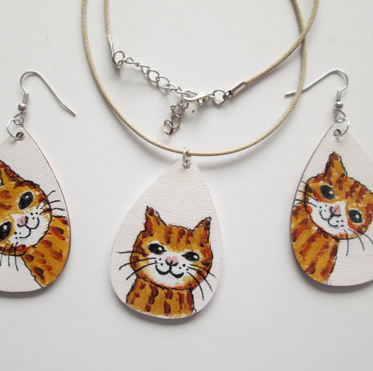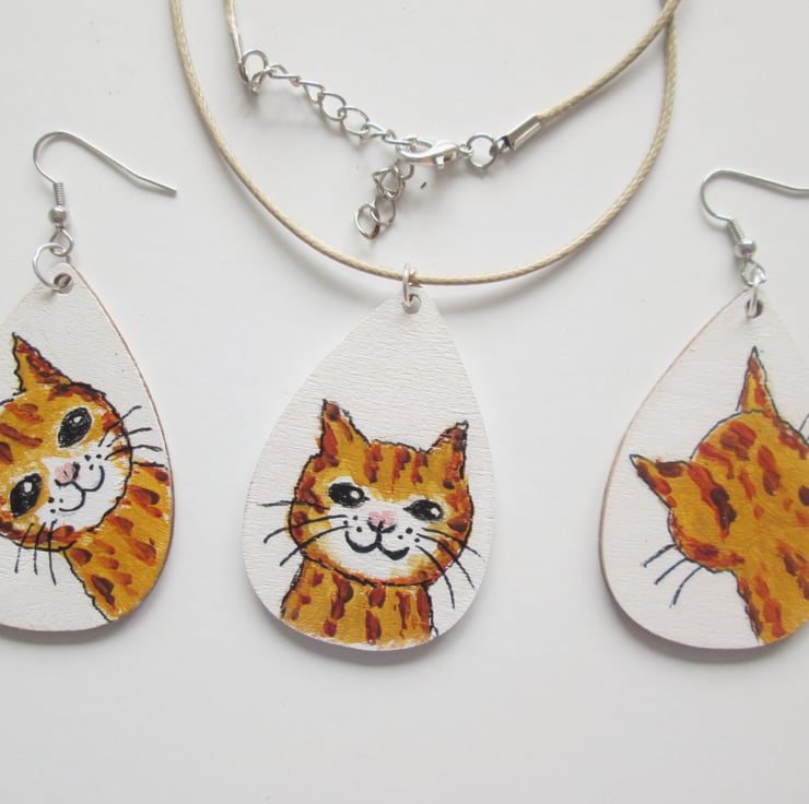 A super cute kitten painting on earrings and a pendant. The back of the earrings are painted also with the kitten. Sure to be a favourite of the cat lover you know.