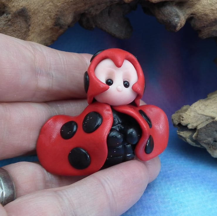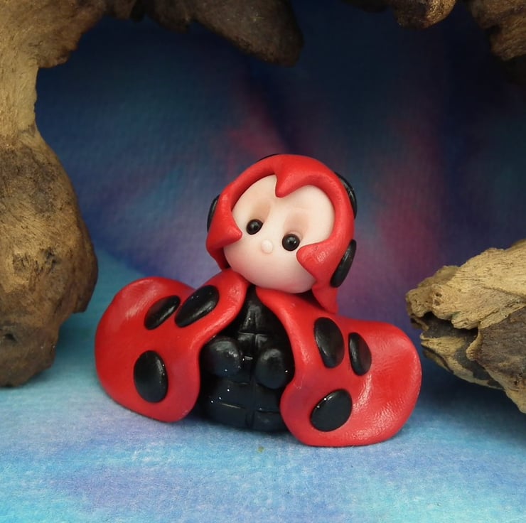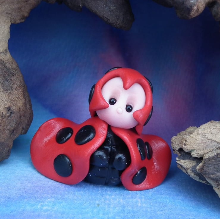 This is a 'one of a kind' creation; entirely handmade without the use of moulds here at my studio on the Sussex Coast. Modelled with Prosculpt polymers, painted with heat set paints before sealing with lacquer, Lucie has sparkling black onyx eyes and is one and a half inches tall.