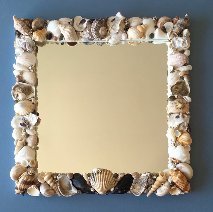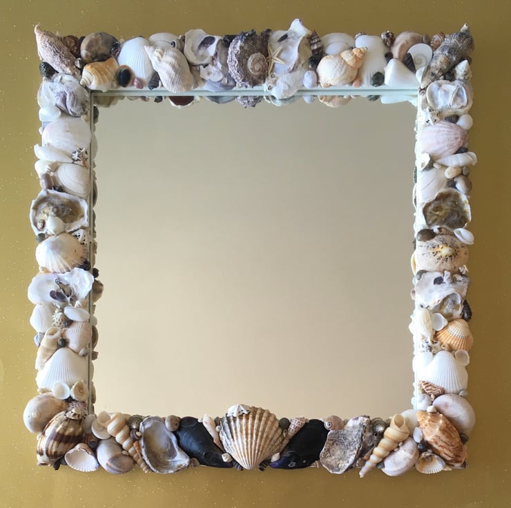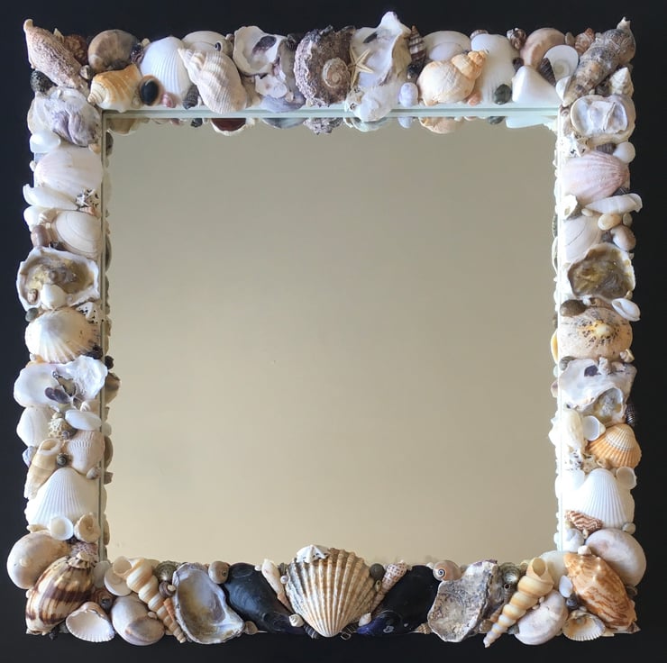 Unique and individually made handcrafted natural seashell mirror