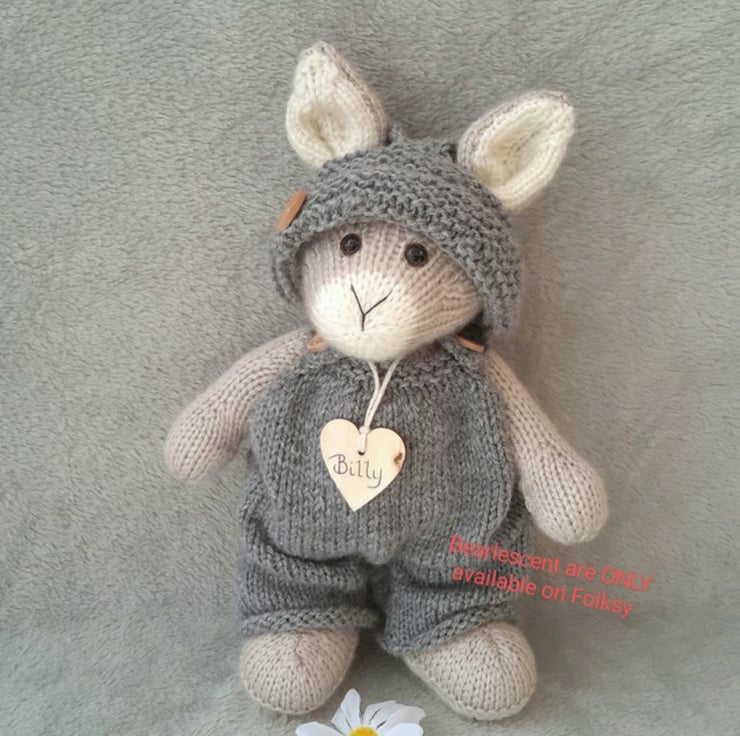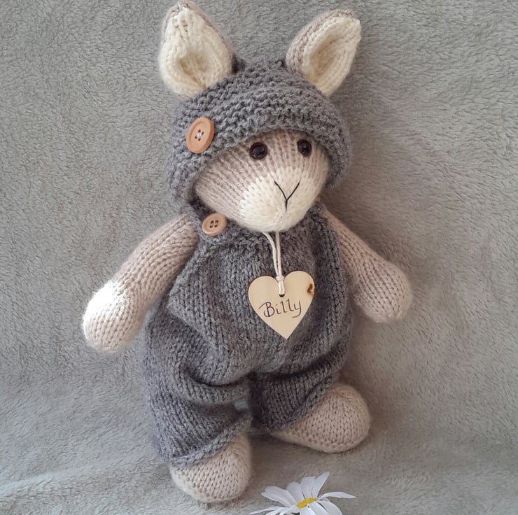 Billy, 11" Hand Knitted Dressed Bunny, a knitted standing rabbit