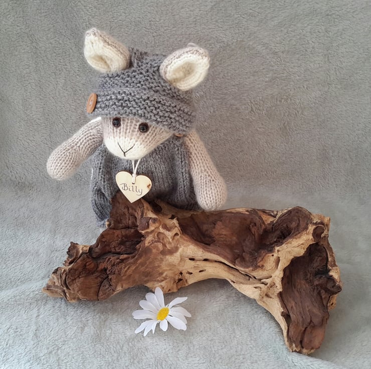 All of my bears and dolls wear a wooden name tag and are listed in my registers, Billy has been added to my new knitted register for 2021.