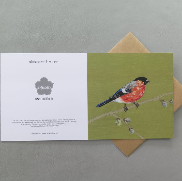 Garden bird card, Bullfinch card, blank cards, bird lover, bird watching