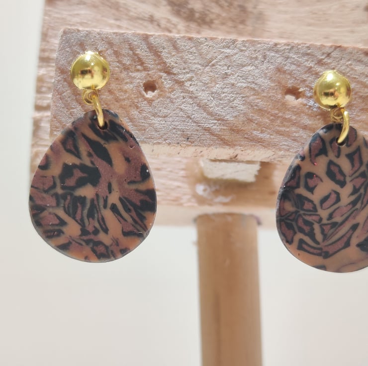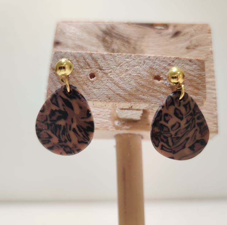 Hand made polymer clay earrings with an abstract pattern. Small sized. Stud fixing which can painter with hypo allergic coating for free on request. Please see all photos for close up detail. All products handmade therefore there may be minor imperfections. Each pair sold as seen, message for more info