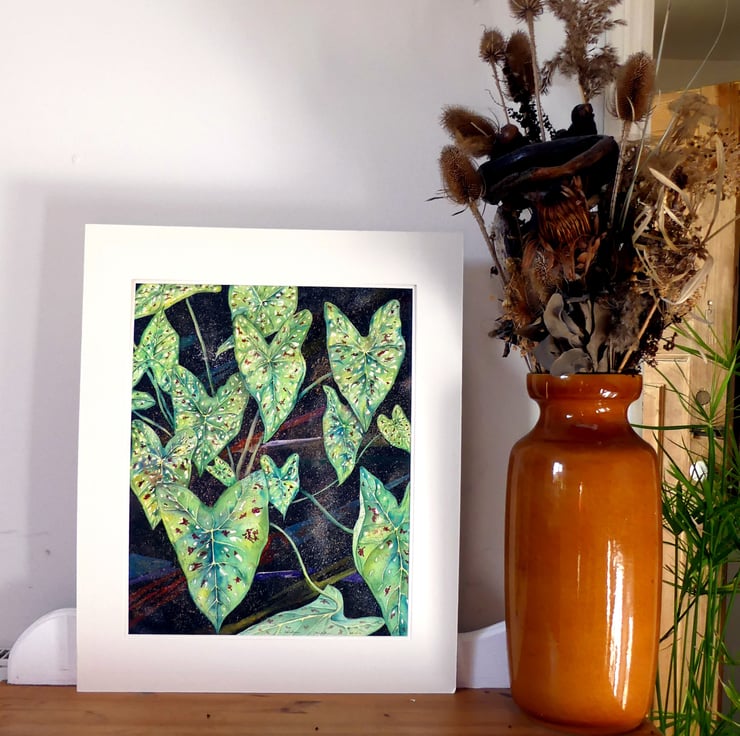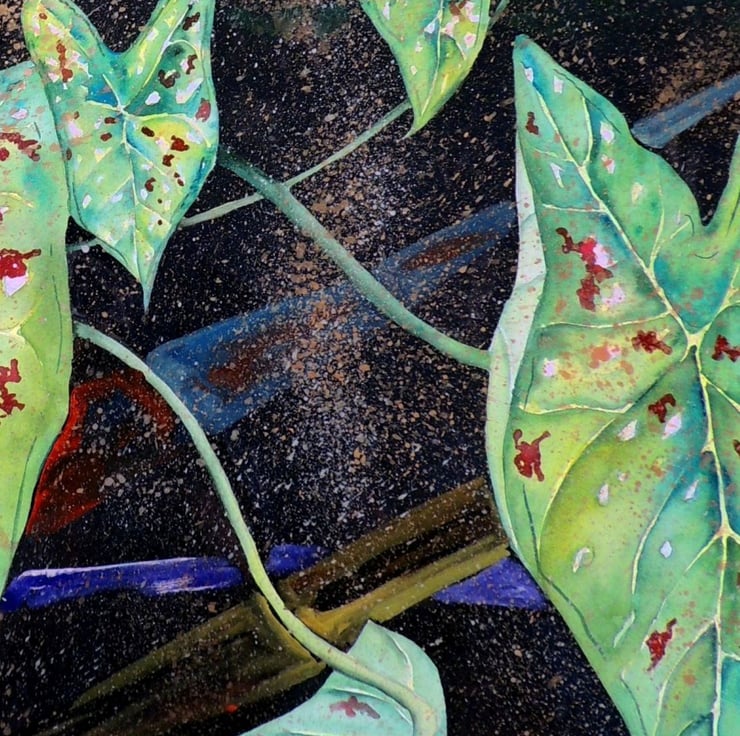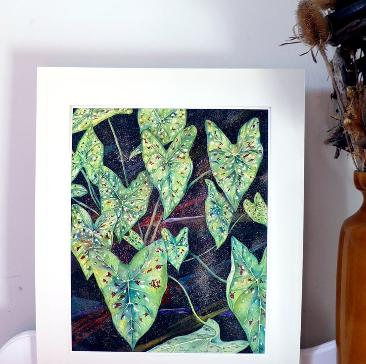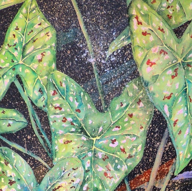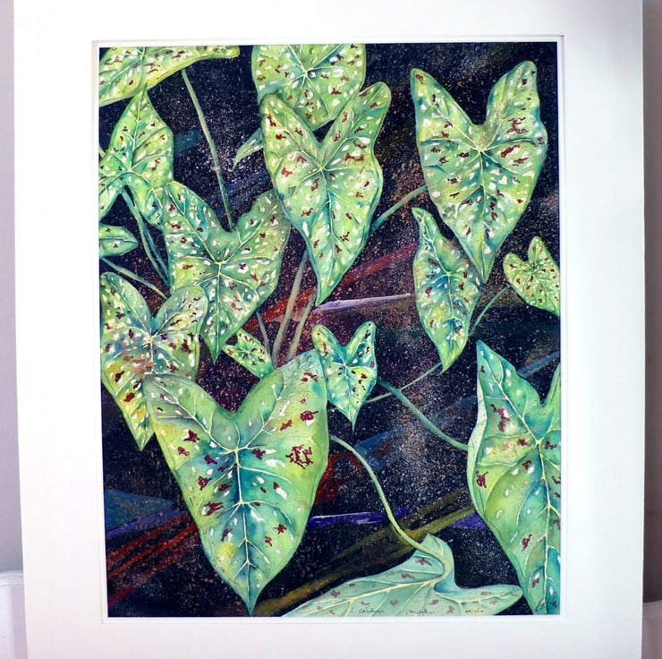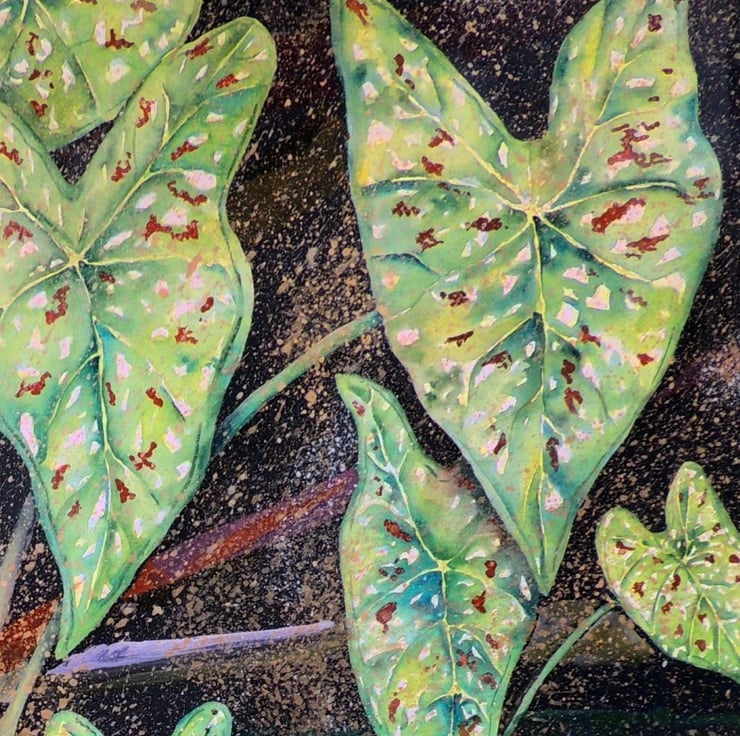 Green Caladium Leaves Tropical Plant Botanical Watercolour Original Painting