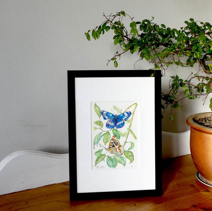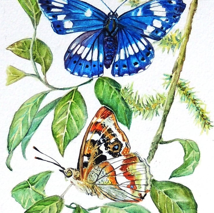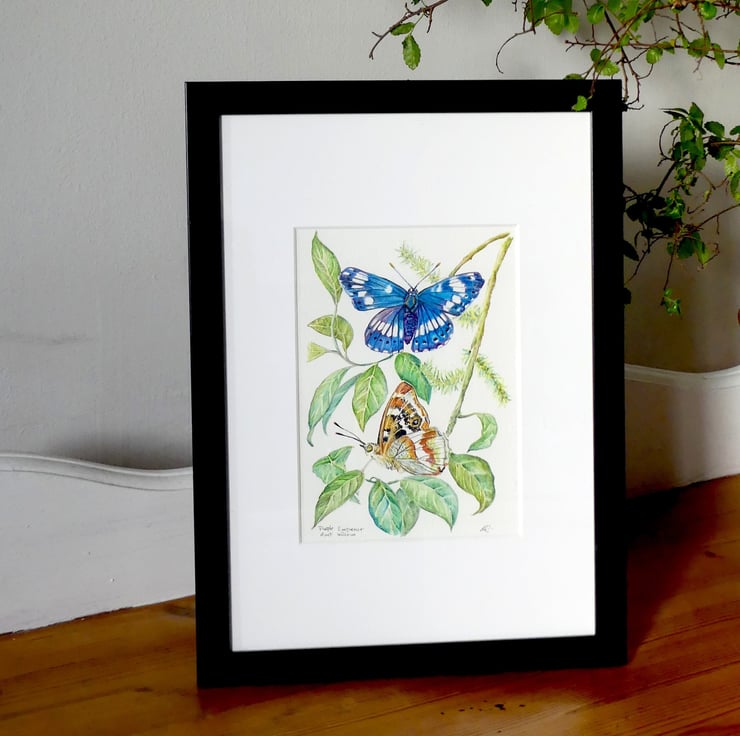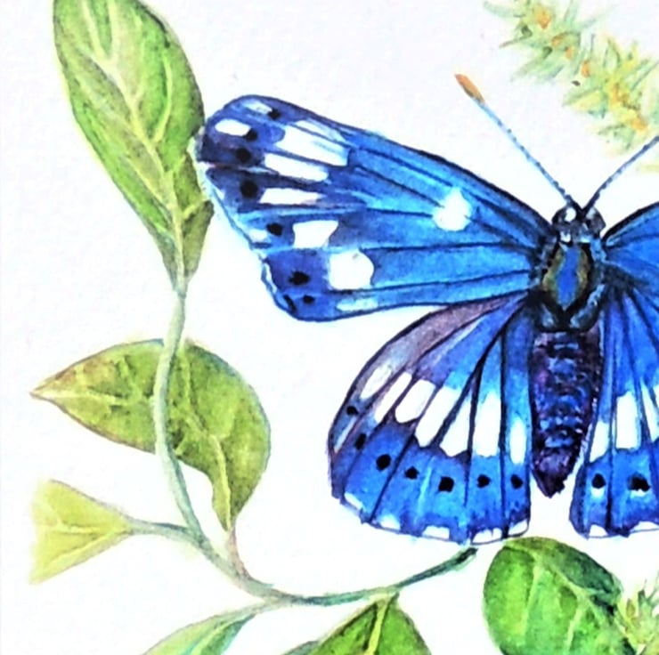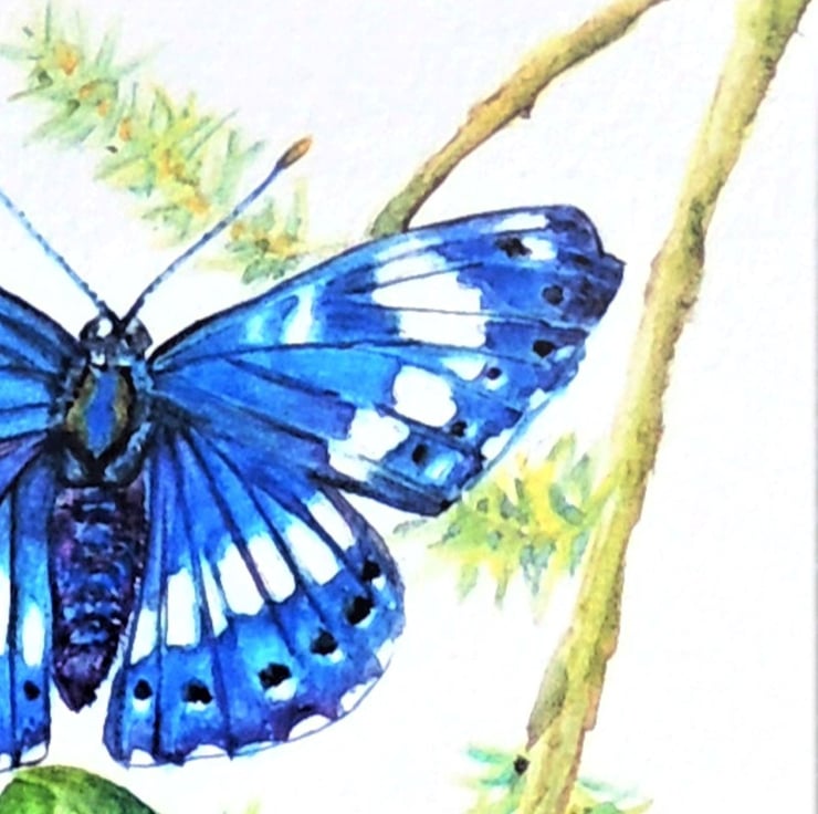 This is a small watercolor and ink painting that is part of a series of butterflies rare as well as commonplace, found in the British Isles. As a child, I have adored and been fascinated with these beautiful and ethereal insects; their magic never fades.